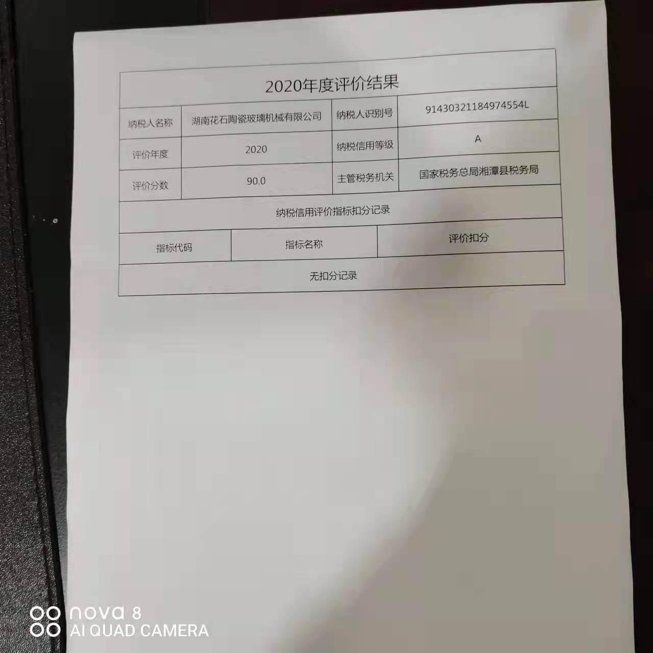 企業(yè)納稅信用等級報告: