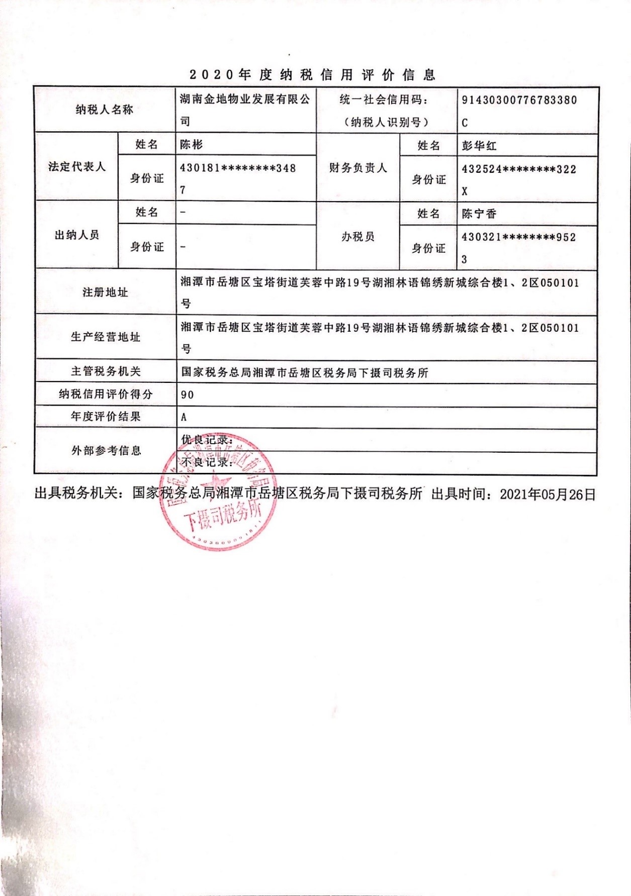 企業(yè)納稅信用等級報告:
