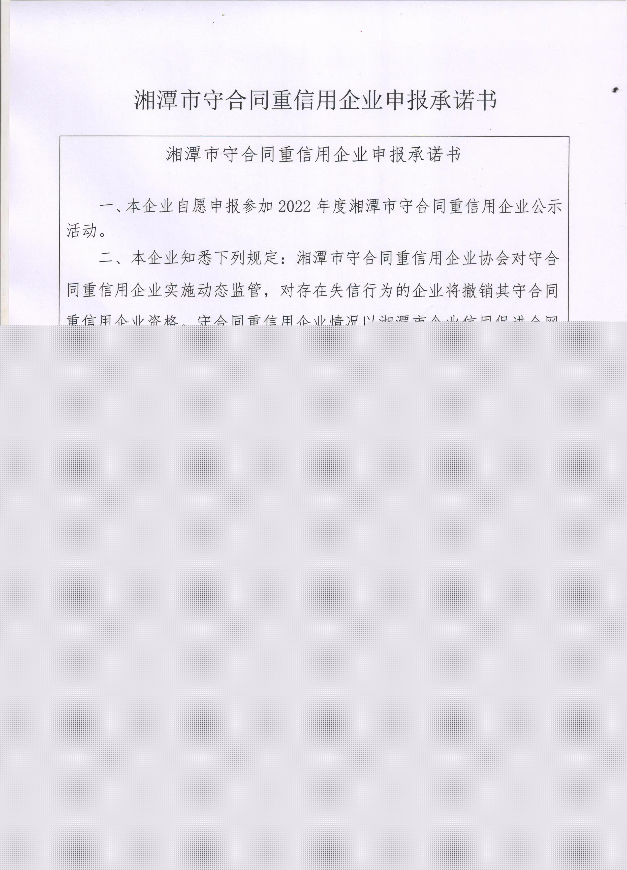 本企業(yè)根據(jù)《湘潭市守合同重信用企業(yè)申報規(guī)定》等編制 2022 年度企業(yè)信用報告書,并保證本報告書內(nèi)容真實、準確、完整。
