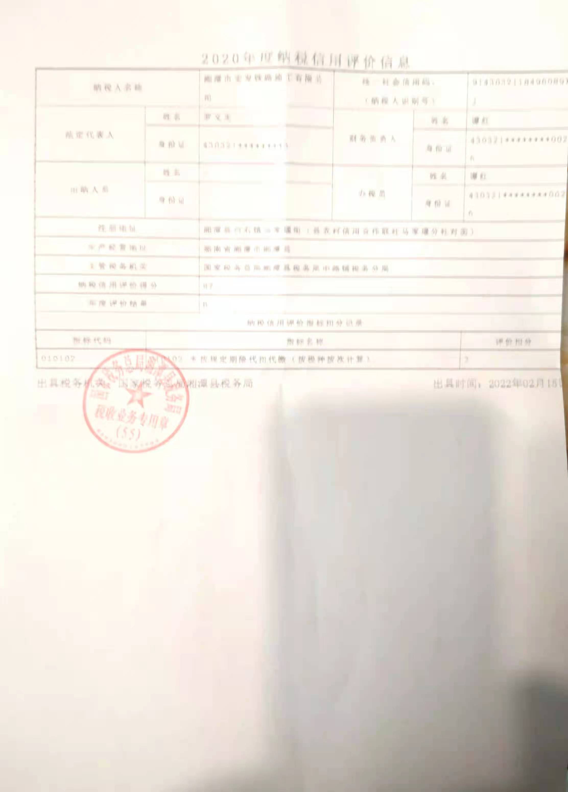 企業(yè)納稅信用等級報告: